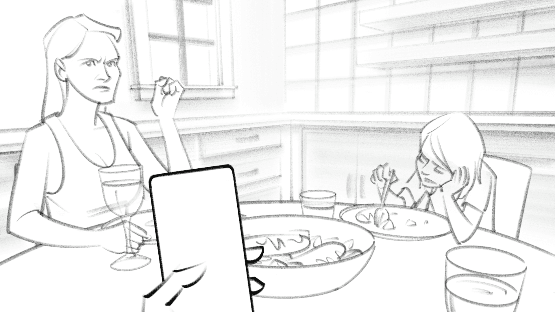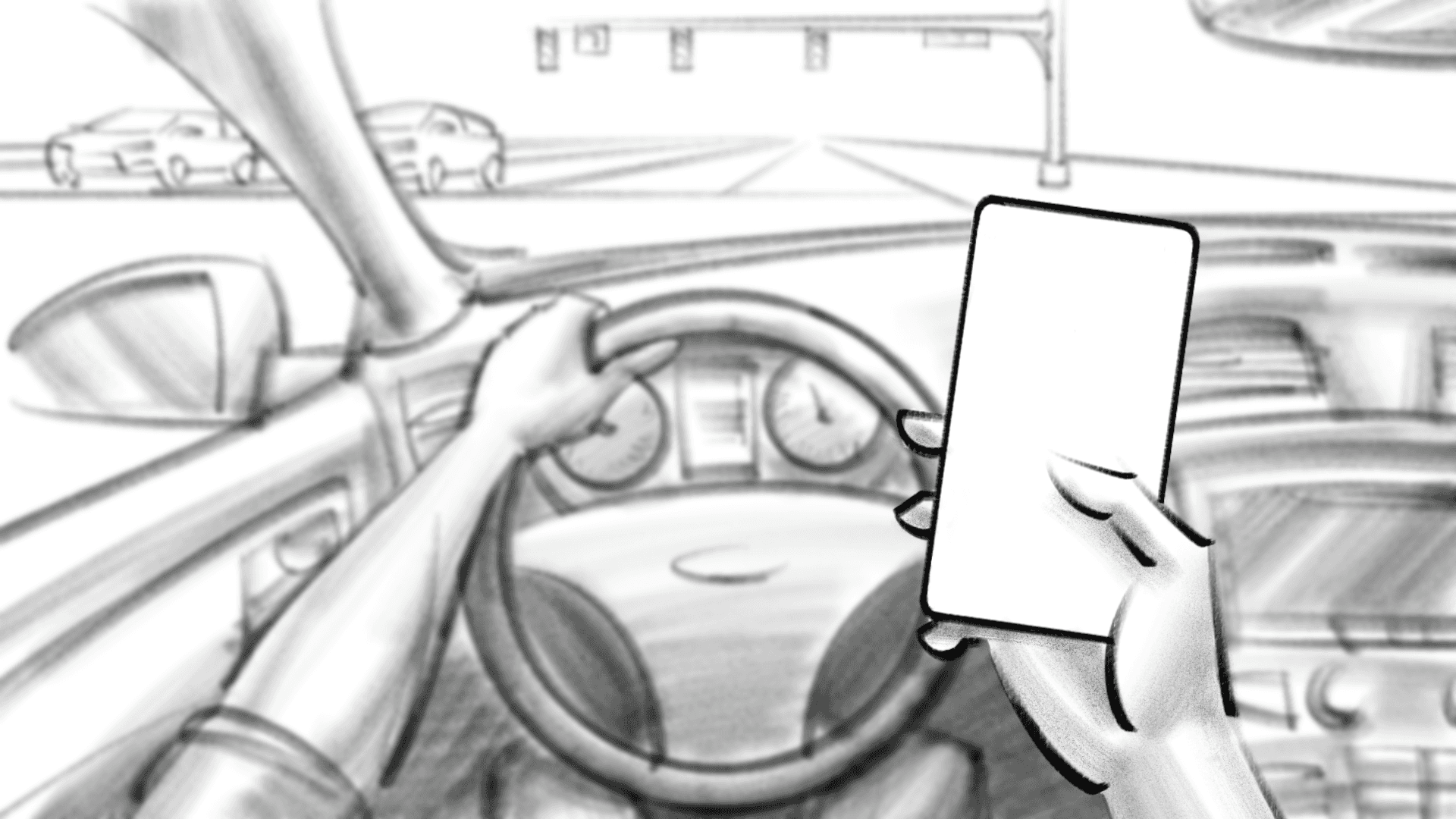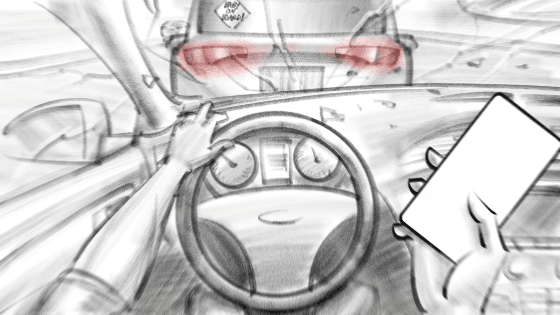 This NHTSA job was valuable practice for drawing familiar, uncluttered, and often inviting environments. But lurking in every scene was an undercurrent of danger, ultimately flooding us in a heavy closing shot. A shot which—while softened in the final spot—had to be drawn with equal parts sensitivity and severity.